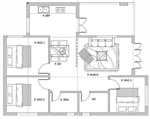Còn đây là hình ảnh thu nhỏ của ngôi nhà cấp 4 9x12m với 3 phòng ngủ nhưng không có gác lửng. Tuy nhiên với thiết kế hình chữ L thông minh cũng thiết kế cho ngôi nhà tiện nghi phục vụ đầy đủ cho cả gia đình. Ngoài ra còn để dư ra một diện tích trống cho các thành viên thư giãn vui chơi.