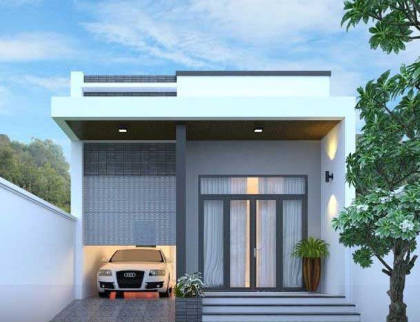 Với mức độ phổ biến của ô tô như hiện nay, đặc biệt là ở các đô thị, vị trí để xe cũng khiến nhiều người đau đầu, vì vậy đây là thiết kế phù hợp với những gia đình có ô tô. Cụ thể dưới đây là những gợi ý thiết kế cho mẫu xe này. Ngôi nhà hình chữ nhật đơn giản, mái bằng, tông màu trắng chủ đạo, mặt tiền lợp ngói trắng sạch sẽ.