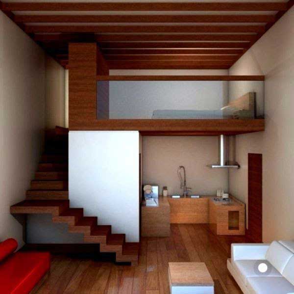 Mặt bằng gồm: phòng khách, bếp + phòng ăn, toilet, 1 phòng ngủ. Cách bố trí các phòng khác với một ngôi nhà thông thường, thông minh và hợp lý với diện tích hạn chế của ngôi nhà.