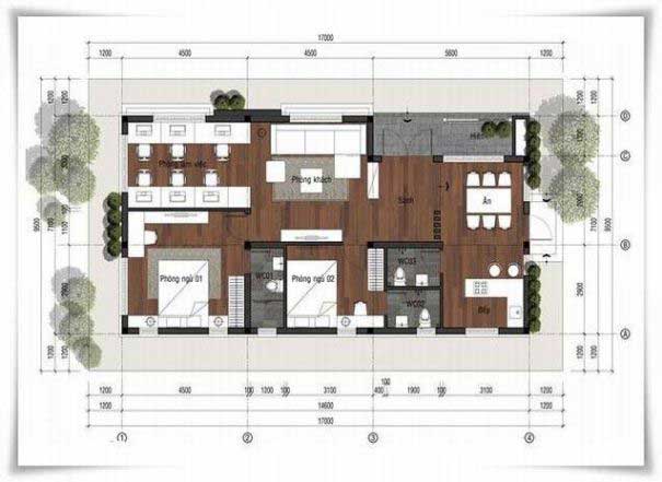 Mặt bằng Nhà cấp 4 có 2 phòng ngủ đẹp