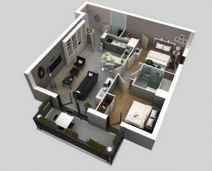 Kiểu nhà 2 phòng ngủ thường có những đặc điểm sau:
