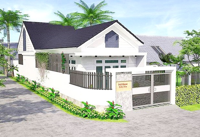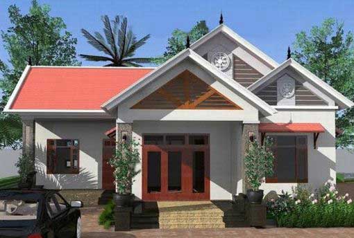 Nhà đẹp này được thiết kế mái thái đỏ truyền thống Việt Nam. Căn nhà là sự kết hợp hài hoà giữa màu trắng nhẹ nhàng, hoà chút màu gỗ đem lại sự nổi bật, thêm vào đó là màu đỏ tươi của mái. Đơn giá ngôi nhà này cũng không quá cao, phù hợp cho các gia đình có thu nhập thấp đến vừa. Không gian sân vườn rộng rãi, thoáng mát, có thể trồng các loại cây cho không gian trở nên thanh lọc hơn. Phù hợp ở các vùng nông thôn, yên bình, thư giãn.