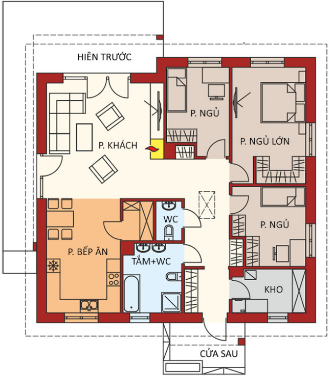 Nhà cấp 4 nông thôn 100m2 với 3 phòng ngủ