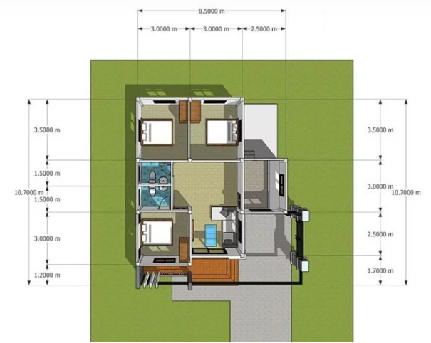 Nhà cấp 4 3 phòng ngủ 8.5x10.7m