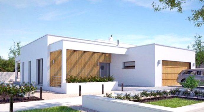 Mẫu nhà 1 tầng 3 phòng ngủ 100m2 có sân vườn trồng cây cảnh bao xung quanh. Diện tích căn nhà rộng rãi có gara ô tô ngoài trời. Thiết kế nhà theo phong cách hiện đại, có tầm nhìn đẹp ra sân vườn. Vê công năng, căn hộ bao gồm phòng khách, phòng bếp, phòng ăn, 3 phòng ngủ và WC