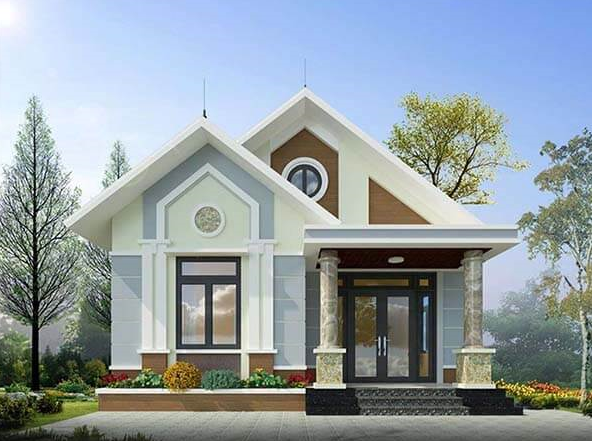 Mẫu nhà này là sự kết hợp nhẹ nhàng giữa màu trắng tinh khôi cùng với mái ngói đỏ nhẹ dịu, nhấn nhá thêm chút màu của gỗ và điểm thêm một vài hoa văn dưới chân nhà để tạo điểm nhấn nổi bật cho ngôi nhà, vừa đơn giản, vừa đẹp.