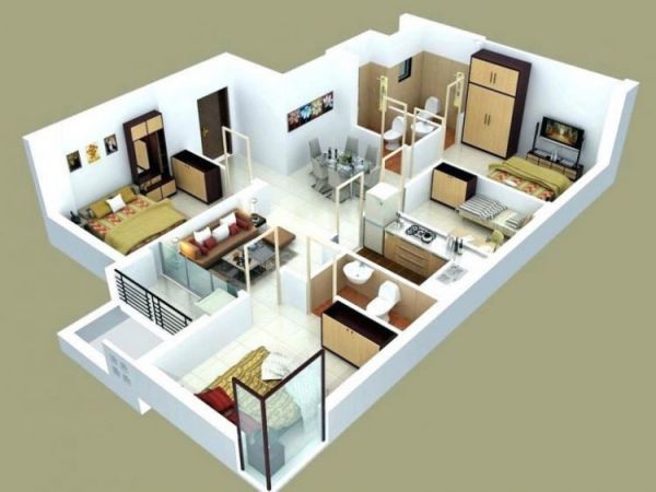 Mẫu nhà cấp 4 diện tích 100m2 có 3 phòng ngủ