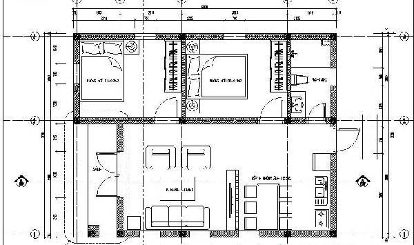 Phương án thiết kế mặt bằng dành cho mẫu nhà cấp 4 7x10 với 2 phòng ngủ được bố trí như sau: