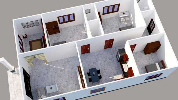 Nói đến nhà cấp 4 là ta nghĩ ngay đến kiểu nhà dù diện tích nhỏ hay lớn cũng đều có những cách thiết kế nội thất hoàn hảo nhất đáp ứng đầy đủ mọi yêu cầu sử dụng của gia chủ. Với mẫu nhà cấp 4 9x15 diện tích vừa phải. Lời khuyên của các chuyên gia thiết kế là nên xây dựng và bố trí ngôi nhà theo hướng đơn giản tiện nghi với hai phòng ngủ. Gia chủ nên xây nhà theo kiểu hình hộp vừa gọn diện tích vừa sử dụng được hết không gian. Mời các bạn cùng nhìn vào bản mô phỏng phối cảnh toàn bộ ngôi nhà cấp 4 9x15.