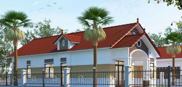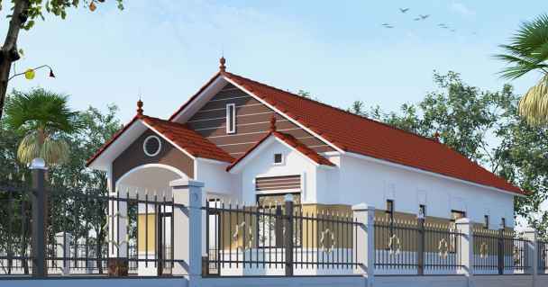Thiết kế phối cảnh sẽ thể hiện một không gian sống cao cấp và thoáng mát. Thiết kế kiến trúc để tận dụng cảnh quan thiên nhiên của sân vườn. Tuy nhiên, thay vì mái ngói đỏ thì màu xám ghi vẫn giữ được nét thẩm mỹ theo thời gian. Tổng kinh phí đầu tư của dự án không quá 1,2 tỷ đồng. Mẫu nhà mái thái đẹp đặc biệt có phần cột tròn mềm mại thể hiện sự tinh tế, mềm mại sang trọng. Những đường nét nhẹ nhàng, những chú lùn cũng như mái vòm cong làm cho công trình trở nên tinh tế hơn. Ngôi nhà mang đến sự vững chãi, bề thế, nhẹ nhàng và uyển chuyển xen lẫn. Toàn bộ phần thân của bức tường công trình được trang trí bằng các đường gờ ngang. Đi cùng với thiết kế kiến trúc nhà mái thái được lợp ngói màu xám càng tôn lên sự trẻ trung và thăng tiến của mẫu nhà vườn mới. Công trình kiến trúc nhà vườn cấp 4 tiên tiến được lắp đặt hệ thống cửa nhôm Việt Pháp màu vân gỗ. Thiết kế hệ thống cửa xếp trượt, tôn thêm nét khỏe khoắn, vững chãi và trẻ trung hơn cho mẫu nhà vườn cấp 4 150 m2 hiện đại.