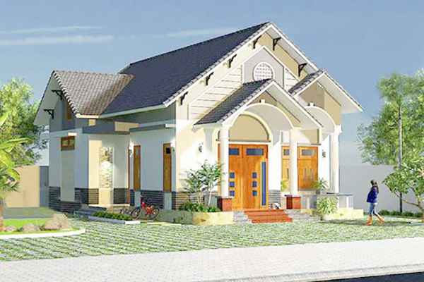 Mẫu nhà cấp 4 có thiết kế cửa sổ trời bật ra phía trước tạo điểm nhấn cho ngôi nhà. Cửa gỗ tự nhiên có màu nâu đỏ đẹp mắt, rất hài hòa với màu ngoại thất. Thiết kế bên trong được bố trí đầy đủ các phòng chức năng phục vụ nhu cầu thiết yếu của gia đình bao gồm: 3 phòng ngủ chính, 1 phòng thờ. 1 khu bếp + ăn, 1 khu nhà tắm + vệ sinh, 1 khu giặt phơi phía sau.