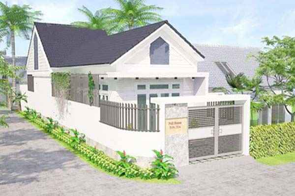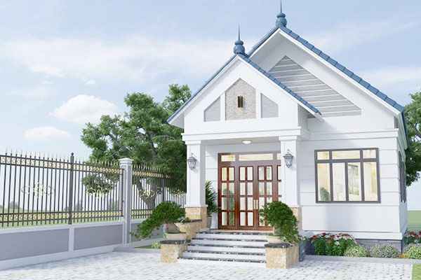 Khác với kiểu mái thái như chúng ta thường thấy. Mẫu nhà cấp 4 này có thiết kế đơn giản, chủ yếu sử dụng các đường khối hình học mềm mại. Sự kết hợp giữa gam màu trắng kết hợp với những đường nét đơn giản tạo nên nét độc đáo cho ngôi nhà. Mặt tiền ngôi nhà được lắp cửa kính cường lực trên diện tích rộng. Mục đích để thông thoáng không gian và tận dụng tối đa ánh sáng tự nhiên cho ngôi nhà.