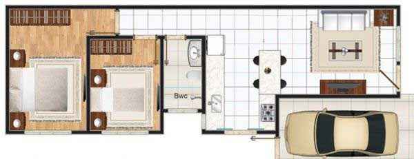 Khu vực phòng khách sẽ được đặt khá đơn giản với một bộ bàn ghế sofa hoặc thiết kế nội thất gỗ hiện đại không sử dụng nhiều hoa văn kiểu cách để phù hợp với không gian và diện tích, mặt tiền chỉ 6m. Khu bếp ăn liên thông với khu sinh hoạt chung này và kết hợp với bàn ăn rất tiện lợi. Cụ thể, khu vực bếp này giúp gia chủ có thể tổ chức những bữa tiệc nhỏ cùng gia đình hoặc bạn bè vào cuối tuần. Cuối nhà có khu vệ sinh đầy đủ tiện nghi cho các thành viên sử dụng. Không gian nhà vệ sinh sẽ bao gồm thêm không gian để cung cấp chỗ giặt và phơi đồ cho gia chủ. Hai phòng ngủ liền kề nhau và song song là khu bếp và khu vệ sinh. Hai không gian phòng ngủ của mẫu nhà cấp 4 diện tích 6x18m này có diện tích bằng nhau cho gia đình từ 3 đến 4 người sử dụng.