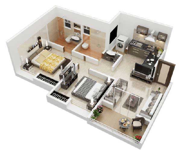 Phương án thiết kế thứ 2 dành cho mẫu nhà cấp 4 70m2 có thêm gác lửng trong thời gian gần đây đang thu hút được rất nhiều sự quan tâm đến từ gia chủ. Bởi vừa nâng cao được diện tích sử dụng mà tổng chi phí xây dựng lại chỉ nằm trong tầm giá nhà cấp 4 mà thôi, hoặc có chênh lệch thì cũng không đáng kể. Cùng xem mặt bằng phối cảnh 3D của phương án thiết kế thứ 2 này ngay bên dưới đây.