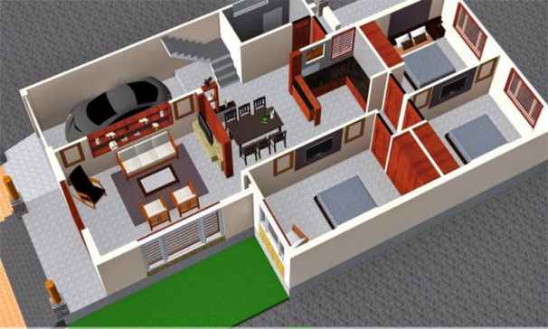 Với diện tích rộng, đầy đủ chức năng và mặt bằng đầy đủ. Gồm 1 phòng khách, 3 phòng ngủ, 1 phòng tắm + WC, 1 khu bếp + ăn. Trường hợp gia đình đông người, gia chủ cũng có thể làm thêm gác lửng. Sau lớp cửa kính, không gian đầu tiên được bố trí sẽ là phòng khách, tiếp đến là không gian phòng ăn và bếp. Giữa các khu chức năng này có sự liên kết với nhau, không có bức tường ngăn cách. Ý tưởng thiết kế nhà này giúp không gian như được mở rộng và tạo cảm giác hài hòa hơn. Đối diện với phòng khách, gia chủ có thể bố trí phòng thờ hoặc phòng làm việc. Tiếp đến là không gian chức năng của phòng ngủ chung và phòng vệ sinh.