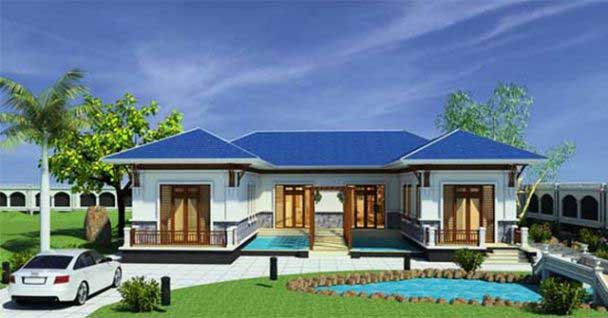 Một không gian xanh bao phủ xung quanh ngôi nhà cấp 4 với kiểu dáng chữ U. Đây là xu hướng thiết kế nhà ở phổ biến hiện nay. Giữa một xã hội bộn bề tấp nập, nhiều chủ đầu tư đã có ý định tìm về với một mẫu nhà có khuôn viên tràn ngập màu xanh của cây lá, hay nói cách khác là phong cách nhà vườn. Nổi bật cho mẫu nhà cấp 4 chữ U này chúng ta thấy đó là hệ mái ngói hình chóp màu đỏ nổi bật.