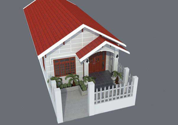 Với diện tích đất hơn 6 × 16,5m, gia chủ có thể làm sân vườn xung quanh như hình bên dưới. Gam màu chủ đạo là trắng với phần mái đỏ và những khung cửa gỗ giúp ngôi nhà trở nên nổi bật. Đồng thời cũng làm cho ngôi nhà gần với cảnh quan hơn.