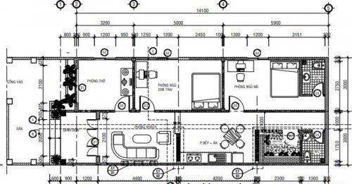 Đối diện với phòng khách sẽ là phòng thờ được thiết kế riêng biệt không ảnh hưởng đến cuộc sống sinh hoạt của gia đình, để tách biệt không gian riêng tư thì đi qua phòng khách là 3 phòng ngủ. Còn phòng bếp và phòng ăn được thiết kế kéo ra sau cùng để tạo không gian thoải mái cho mọi sinh hoạt, mùi thức ăn khi chế biến cũng không ảnh hưởng đến không gian chung của ngôi nhà.