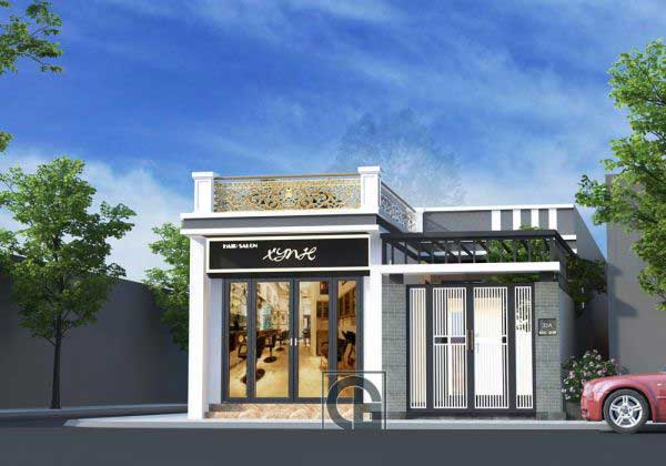 Một phần không gian kinh doanh được thiết kế cửa kính trong suốt chúng ta có thể nhìn được vào không gian bên trong, đây là yếu tố cần thiết của một cửa hàng kinh doanh, buôn bán. Mẫu nhà trên đây là điển hình cho sự phổ biến của loại hình nhà ở kết hợp với kinh doanh. Mà cụ thể trong bản phối này chúng ta thấy một không gian sang trọng của một salon tóc hiện đại. Và đương nhiên khi thiết kế bạn có thể biến không gian ấy thành bất cứ mục đích kinh doanh nào từ một shop quần áo, một quán cafe, một phòng khám... đều rất phù hợp.