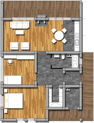 - Phong cách xây dựng : Kết cấu hiện đại, kèm những tiện ích thông minh bên trong nội thất. 2 phòng ngủ - 2 nhà vệ sinh – 1 phòng khách – 1 nhà bếp