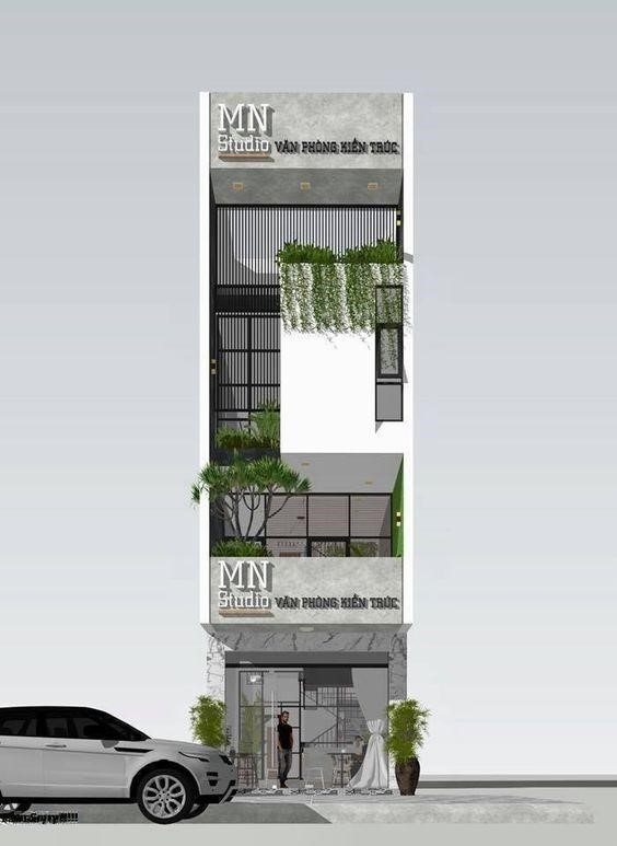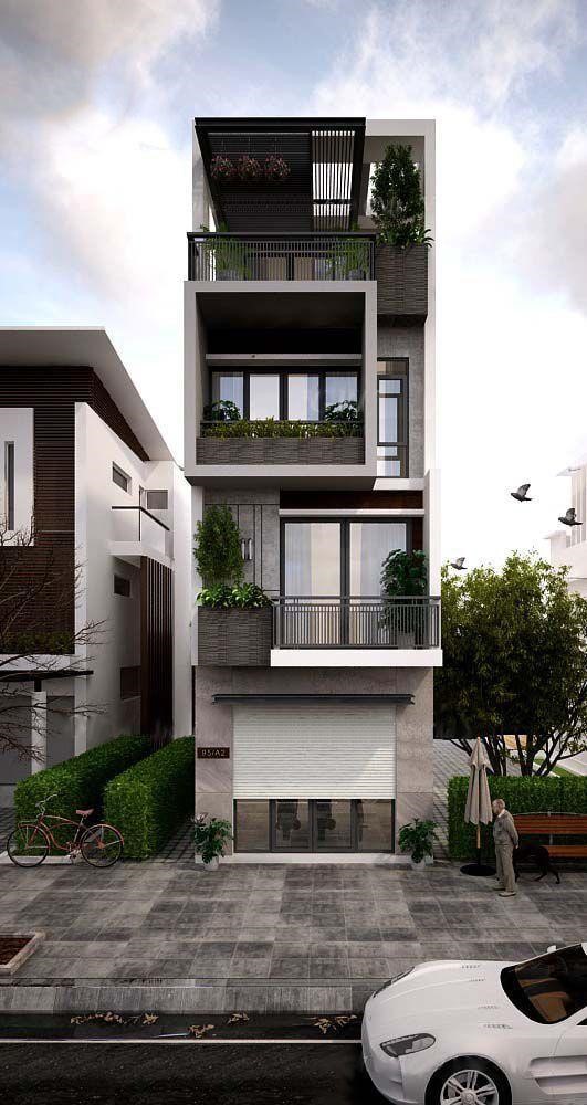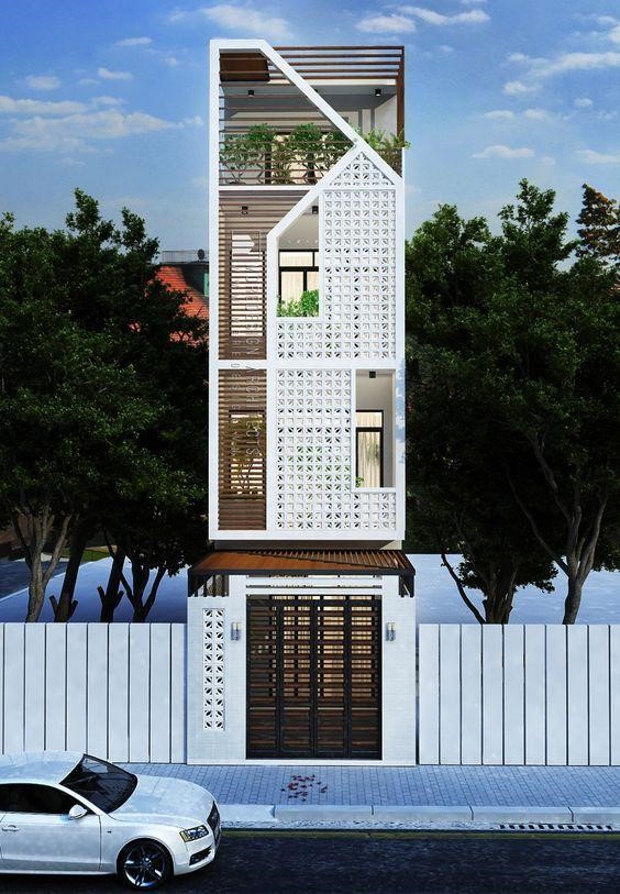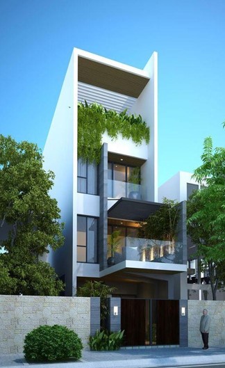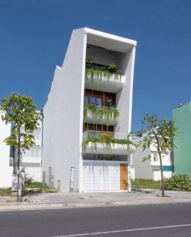 Ngôi nhà thứ nhất trong danh sách hôm nay, đã thuyết phục chúng tôi từ vẻ ngoài khá sáng. Nhà kết hợp từ gam trắng đánh bật lên giữa một khu phố được bao quanh bởi thảm thực vật xanh. Khi các tầng từ ban công được thêm vào là một cây xanh như làm tô điểm cho ngôi nhà với một sức hút riêng. Bạn có thể thấy rõ nét việc trang trí không được sử dụng quá nhiều nhưng đủ để làm nên thành công của ngôi nhà.