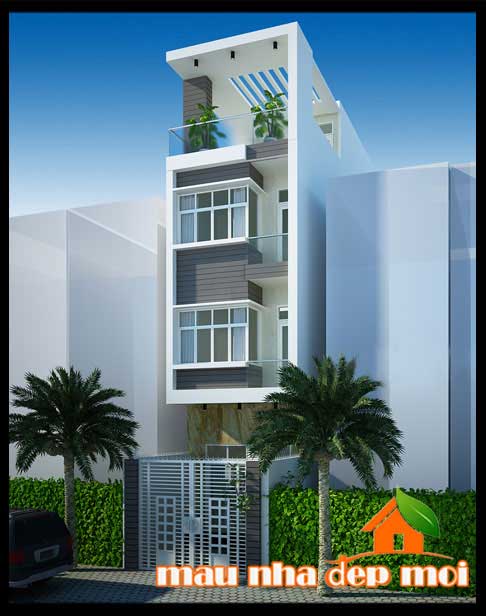 Tổng quan phối cảnh mẫu nhà ống 2 tầng 1 tum hiện đại có sân thượng