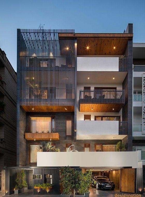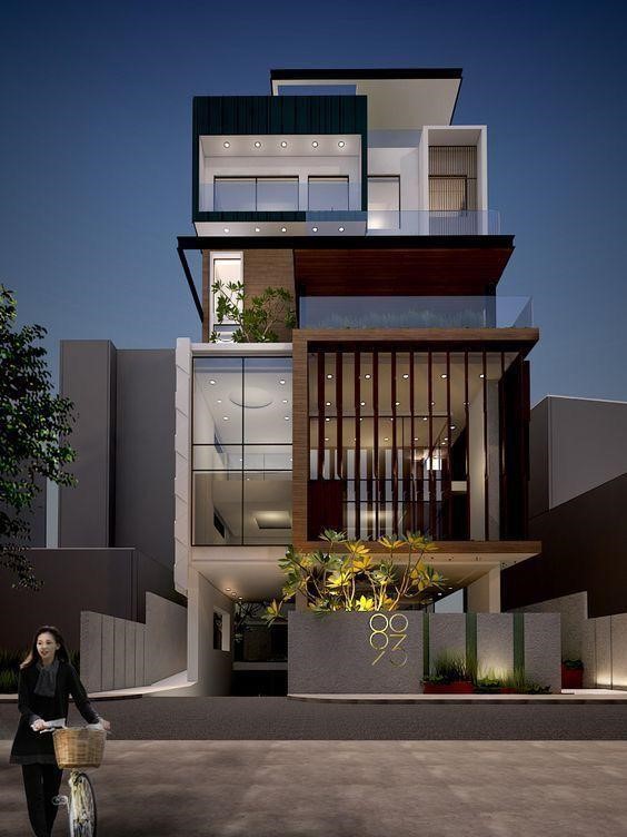 Thông qua phối cảnh từ ngôi nhà, bạn có thể cảm thấy nét hiện đại đã được thể hiện một cách đặc sắc thông qua kết cấu từ từng tầng. Giúp cho công trình ghi điểm một cách hiệu quả từ nét nhìn đầu tiên, kết hợp với các mảng tường chắc chắn là các vạt gỗ được ốp cố định phía trần và hông nhà khi chúng lại vô tình hài hòa với hệ thống chiếu sáng một cách độc đáo.