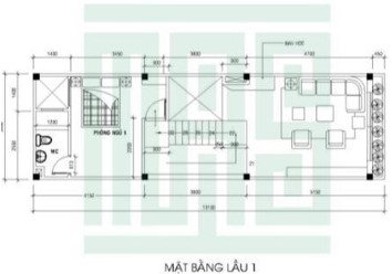 Mặt bằng lầu 1: Nhờ kết cấu cao tầng nên kiến trúc sư đã phân bổ với 1 gian nhà sinh hoạt tập thể rộng rãi và phía sau chính là 1 phòng ngủ khi được kết hợp đầy đủ tiện nghi bên trong.