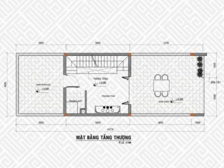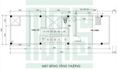 Mặt bằng tầng 4: Có thể thấy với mặt bằng này gia chủ sử dụng cho mình với 1 gian thờ nằm chính giữa kèm thêm là 1 sân phơi và 1 sân chơi. Nhờ kết cấu từ 4 tầng nên việc chức năng sinh hoạt được mở rộng hơn. Nhờ đó nét tiện nghi cũng được tích hợp một cách hoàn hảo cho kiến trúc nhà ống 4 tầng hiện đại với diện tích 7x14m.
