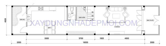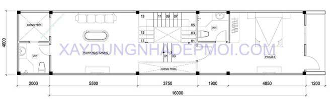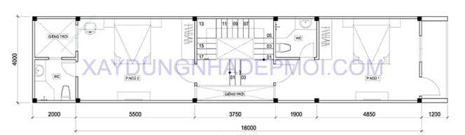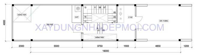 Bản thiết kế mặt bằng mẫu nhà ống 4 tầng đẹp 64m2