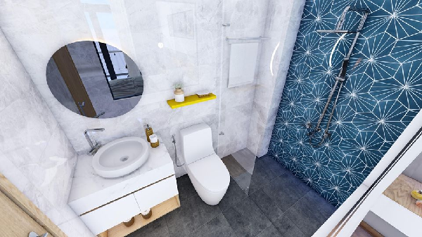 Với những căn nhà thiết phòng vệ sinh chung có thể lựa chọn mẫu thiết kế trên đây. Không gian nhỏ phòng vệ sinh được bố trí thành hai phần để phù hợp với việc sử dụng gia chủ.