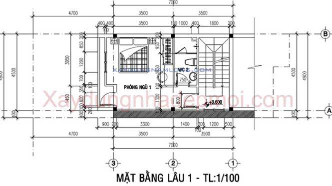 Bản vẽ chi tiết căn nhà phố 1 trệt 2 lầu sân thượng hiện đại