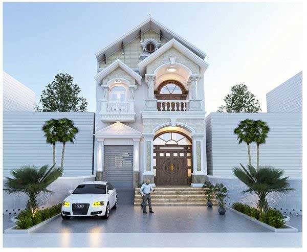 Mẫu nhà phố 2 tầng mái thái mang thiên hướng cổ điển hòa quyện với hơi thở hiện đại, nếu chiêm ngưỡng ngôi nhà một cách tỉ mỉ tôi tin chắc rằng bạn sẽ bị thu hút bởi từng không gian. Ban công tầng 2 không quá rộng nhưng lại rất dễ thương với cửa đẩy và rèm cửa màu trắng, sẵn sàng cho chủ nhân chiêm ngưỡng vẻ đẹp thế giới xung quanh lung linh và tuyệt vời đến như thế nào. Với thiết kế cửa gỗ màu nâu càng tạo nên sự nổi bật riêng cho ngôi nhà của mình.