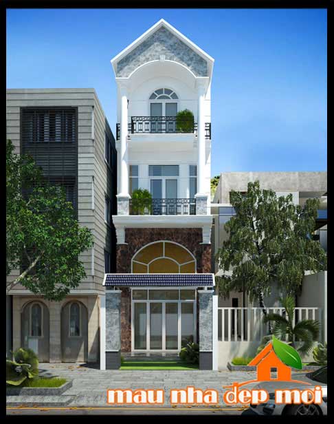 - Mẫu nhà phố 3 tầng mái thái đẹp mặt tiền 4,5 mét