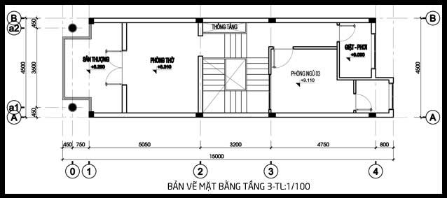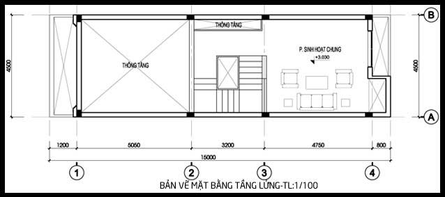 - Diện tích lô đất là 90m2, diện tích thiết kế và xây dựng là 72m2 với đầy đủ các công năng như sau: Tầng 1 là phòng khách, phòng ăn, phòng bếp, wc chung,kho. Tầng lửng là nơi sinh hoạt chung. Tầng 2 là khu vực 2 phòng ngủ. Tầng 3 là phòng thờ, phòng ngủ, giặt phơi kèm sân thượng.