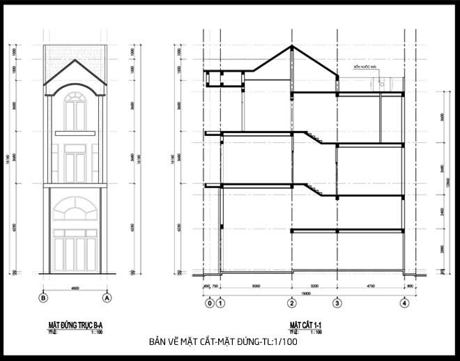 - Mẫu nhà phố 1 trệt 2 lầu sân thượng