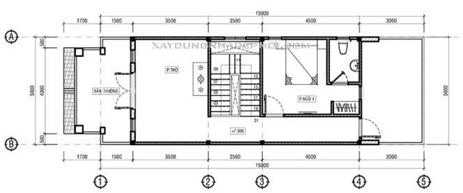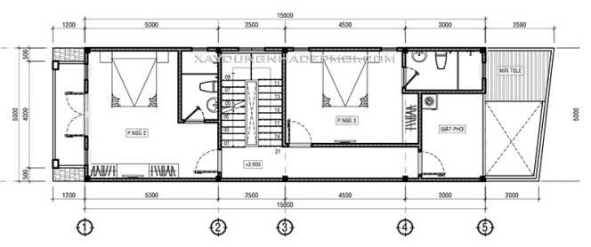 Bản vẽ mặt bằng căn nhà phố 3 tầng có 4 phòng ngủ