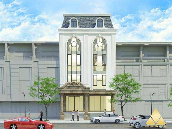 Mẫu thiết kế gợi ý phù hợp nếu diện tích đất mặt phố của bạn có hai mặt tiền. Với lợi thế của vị trí tự nhiên thì nhà ở được thiết kế theo phong cách tân cổ điển có thêm không gian để nhấn mạnh sự sang trọng là toàn bộ mặt tiền hai bên. Vẫn sử dụng các chi tiết đặc trưng để trang trí như các đường phào chỉ, cửa sổ vòm hai lớp…những điểm đặc biệt nhất của mẫu gợi ý này chính là thiết kế nhà lệch tầng hiện đại nhưng cũng rất hài hòa với tổng thể kiến trúc chung.