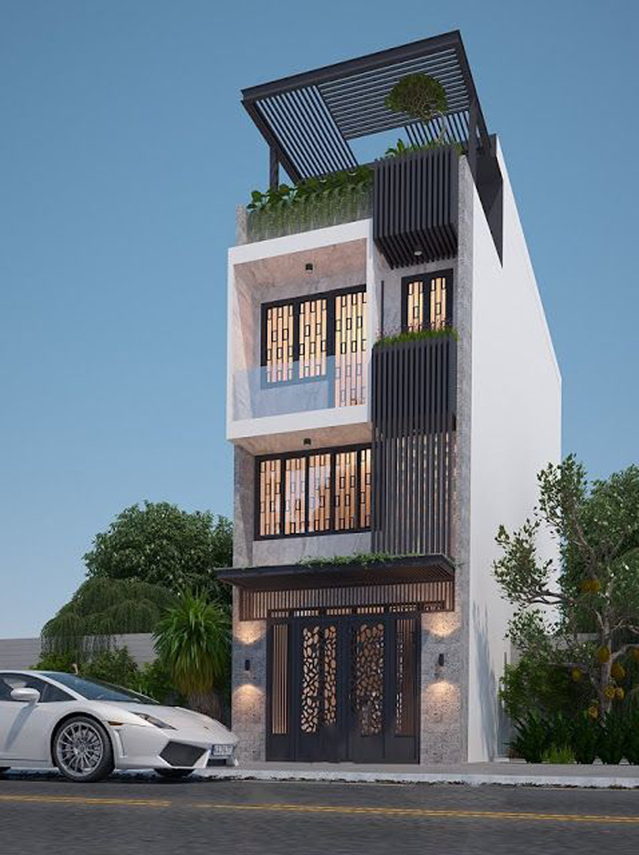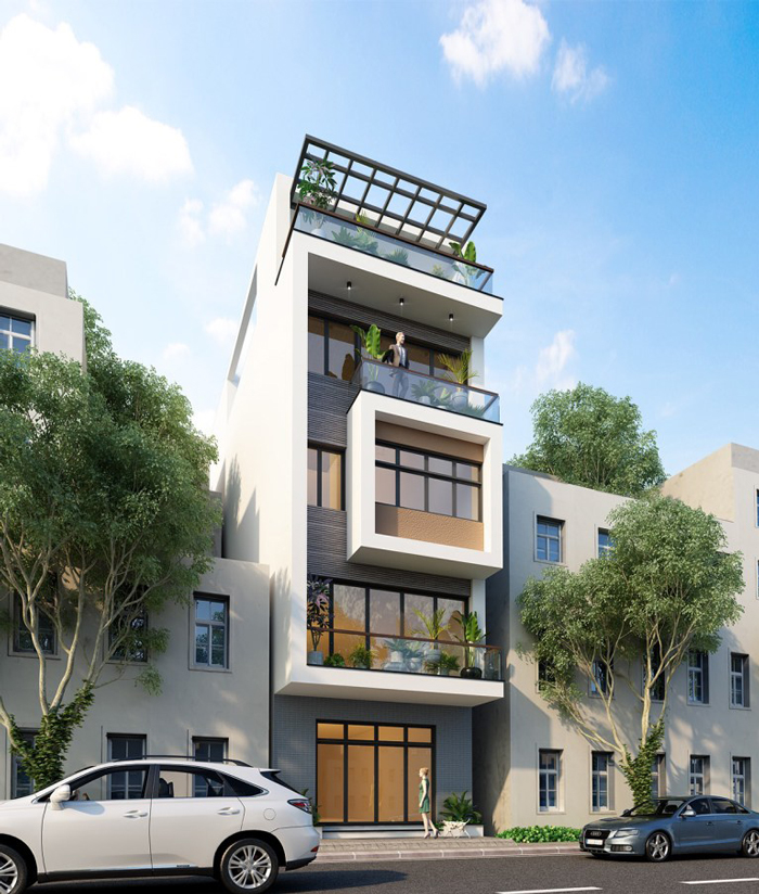 Nhà phố 4 tầng 5x10m này hiện đang được rất nhiều gia đình lựa chọn bởi các ưu điểm nổi bật từ tính thẩm mỹ cho đến việc đáp ứng các công năng như khả năng mở rộng tầm nhìn vừa tạo sự thông thoáng vừa tinh tế, sáng tạo trong kiến trúc. Cùng với phong cách hiện đại qua những đường nét gọn gàng, tinh tế dù diện tích hạn chế nhưng ngôi nhà vẫn được yêu thích nhất hiện nay. Phần mặt tiền được thiết kế ấn tượng và thông minh, kết hợp chặt chẽ với tổng thể mang đến sự sáng tạo cho công trình. Mang ý tưởng ngôi nhà phố gần gũi với thiên nhiên qua hệ ban công rộng đón gió kết hợp cùng cây xanh hiệu quả đã giúp mẫu nhà 4 tầng này được hoàn thiện theo một nét ấn tượng đầy cuốn hút.