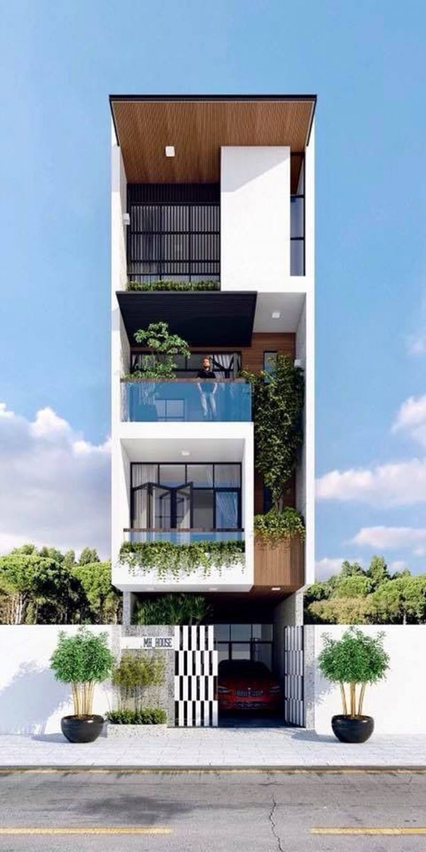 Ngôi nhà phố 4 tầng trên được thiết kế với ý tưởng nối liền thiên nhiên trong sự hiện đại của phương Tây. Những mảng xanh được bố trí phủ từ tầng 1 lên tầng 4, giúp thanh lọc không khí cũng như mang lại sự thoáng mát, xua tan cảm giác bức bối. Mẫu nhà với thiết kế hiện đại và sang trọng nên những vật liệu được sử dụng trong công trình này có chất lượng cao như gồm kính cường lực, gỗ gỗ conwood, sơn dùng cho ngoại thất ngoại nhập