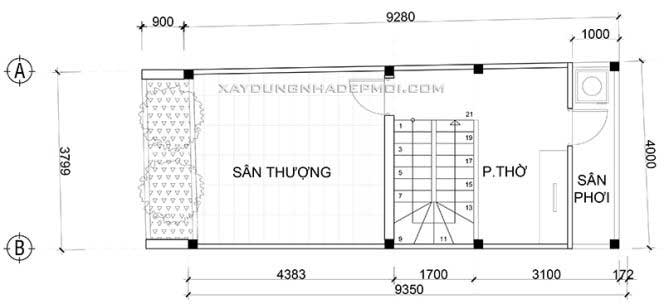#Mặt bằng tầng thượng: