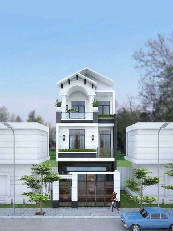 Với kiến trúc mái thái áp ngói đơn giản, vừa mang đến cho căn nhà nét đẹp thẫm mỹ, lại còn điều hòa được lượng nhiệt giúp bên trong căn nhà mát mẻ, thoải mái. Gam màu trắng nổi bật cùng phối cảnh tiêu chuẩn kiến trúc tạo nên sự kết hợp hoàn mỹ và hiện đại. Việc lắp đặt hệ thống cửa bằng kính cường lực tạo điểm nhấn cho căn nhà có mặt tiền nổi bật. Căn nhà không chỉ mang nét đẹp từ vỏ bọc bên ngoài mà kiến trúc bên trong cũng được xây dựng rất chắc chắn và kiên cố. Là mẫu nhà phố hiện đại phù hợp với các hộ gia đình ngày nay.