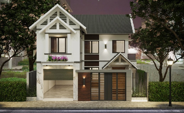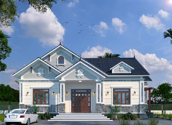 Bản thiết kế ấy đã được ứng dụng và cho ra đời một mặt tiền cực kỳ đẹp mắt, nhận được cái gật đầu từ chính gia chủ và nằm trong top thiết kế tham khảo cho những gia chủ đang có ý định xây dựng tương tự. Có thể thấy ngôi nhà sử dụng thiết kế theo một phong cách hiện đại với tone trắng trang nhã kết hợp vùng thiết kế mái Thái cùng màu sắc cổ điển mang đến vẻ đẹp sự sang trọng cho ngôi nhà.