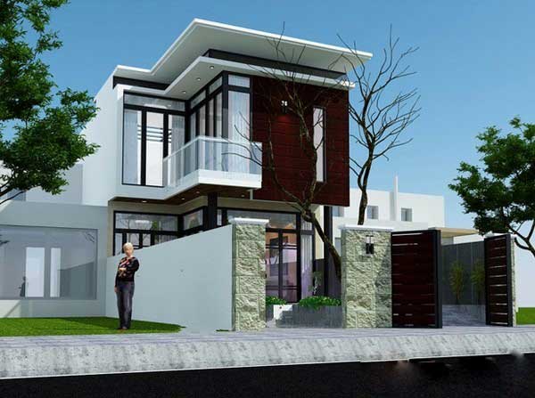 Mang phong cách của những ngôi nhà phố châu Âu, mẫu nhà phố 9x15m này gây chú ý bởi thiết kế và màu sắc ấn tượng. Gam màu đỏ mận khiến kiến trúc trở nên thu hút giữa con phố. Kiến trúc nhà được thiết kế hai tầng, với cửa ra vào được xây dựng cả ở hai bên, điều này đảm bảo cho việc di chuyển của các thành viên dễ dàng hơn. Không gian vườn, cây xanh được trang trí và trồng xung quanh tạo sự phóng khoáng, rộng rãi cho ngôi nhà.