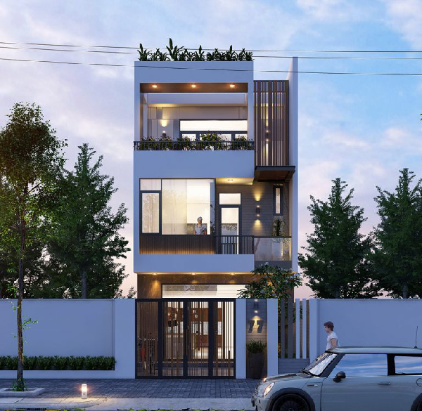 Tầng 1 với gara để xe đáp ứng đủ 4 tiêu chí lưu ý phía trên, bên trên là sân thượng đủ rộng giúp thư gian cuối tuần, cùng với đó là hệ thống khối hộp được sắp xếp hợp lý và thông minh. Thêm nữa, những kiến trúc dạng này được đánh giá xanh bởi thiết kế vô cùng khéo léo giữa diện tích ở với không gian xanh được bố trí xung quanh nhà. Từng chi tiết một làm nên một ngôi nhà được đánh giá cao về mọi mặt.