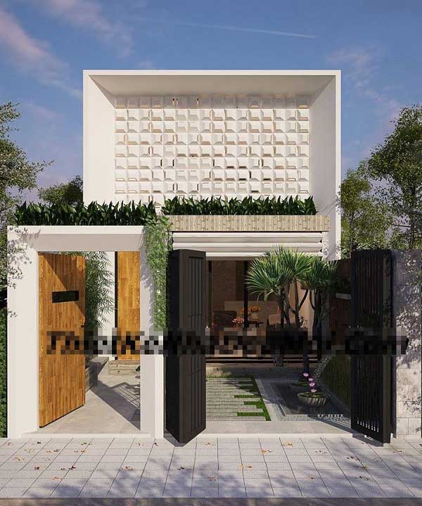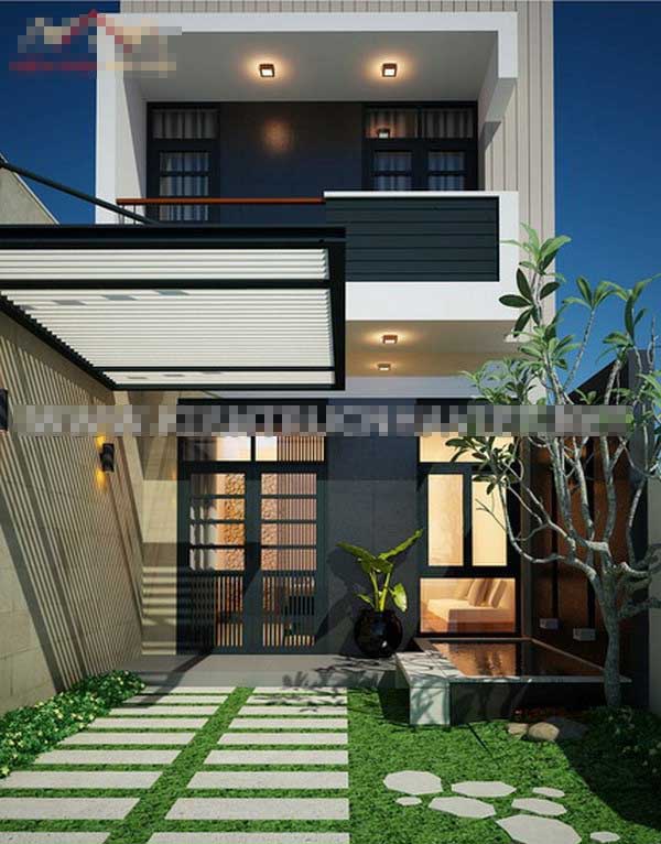 Với thiết kế theo phong cách nhà ống có hai tầng hiện đại tạo được sự thú vị cho những gia chủ khi nhìn vào mẫu thiết kế này, với khoảng sân rộng từ đó có thể thiết kế sân vườn để tạo được khoảng không gian xanh lý tưởng bên cạnh đó đây cũng là một điểm nhấn cho ngôi nhà.