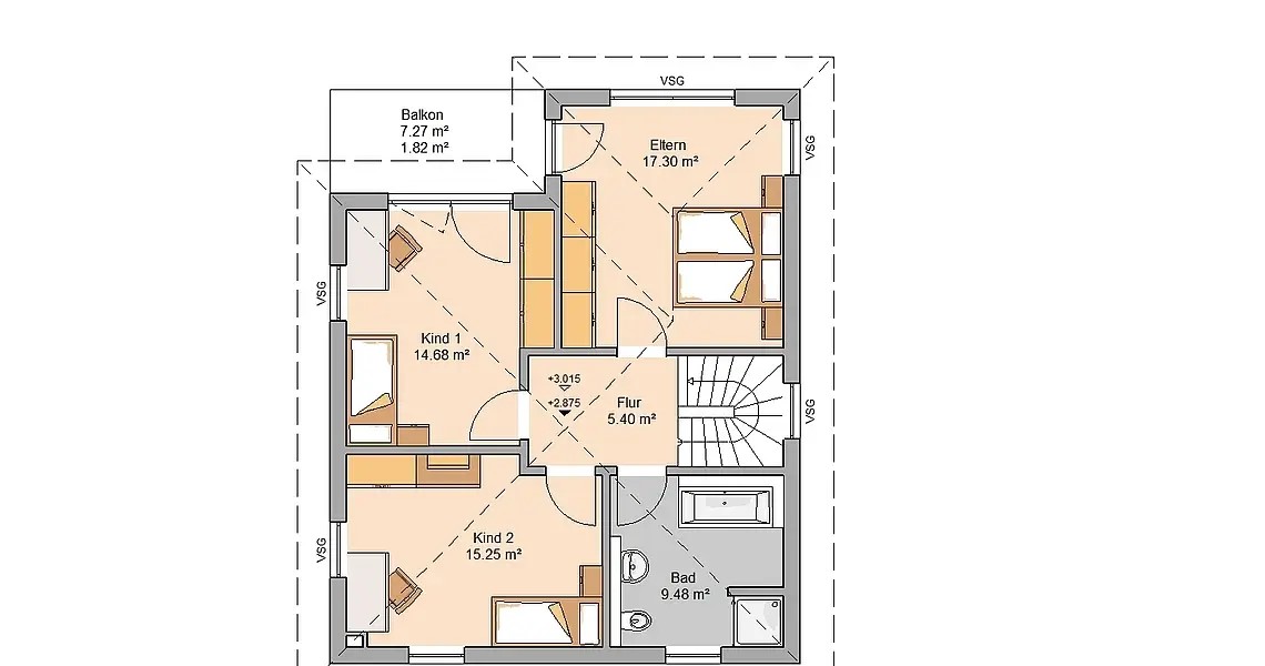 Kết cấu từ tầng 2 : Thông qua bài viết chúng ta cũng nhận diện được kết cấu tiếp theo này sẽ hướng đến là gì. Không nằm ngoài dự đoán của chúng tôi khi ngôi nhà được triển khai với 4 gian phòng ngủ nằm theo 4 góc nhà để nâng chức năng này lên con số 5. Nhằm giải quyết cho những nhu cầu mà chủ đầu tư đã yêu cầu cho một không gian hoàn thiện từ phần kết cấu.