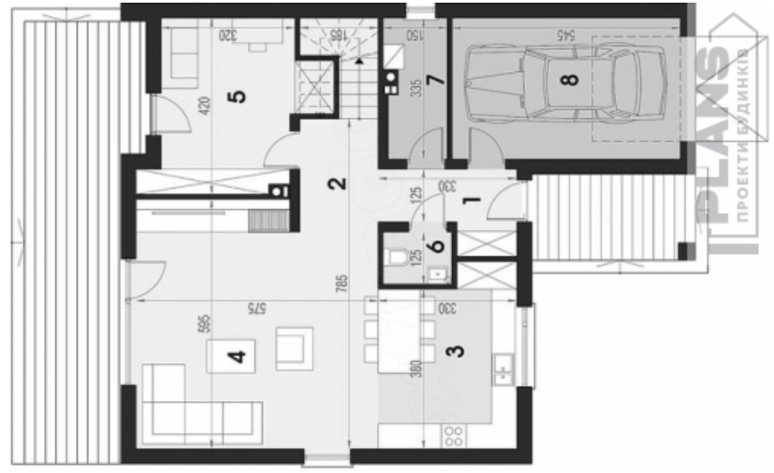 Mặt bằng tầng 1 : Gồm các chức năng đầy đủ khi chúng là không gian sinh hoạt chung với gara, nhà bếp, phòng khách, phòng sinh hoạt chung từ các vị trí thích hợp để, thông thoáng cho gia đình 4 thành viên.