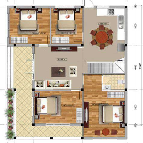 Mẫu nhà đẹp này được thiết kế vời 2 mặt thuận tiện chi việc đi lại của gia chủ, trong đó cửa chính được bố trí hướng Tây Bắc – cửa phụ hướng Tây Nam. Chức năng căn nhà gồm 4 phòng ngủ thiết kế riêng biệt, phòng khách đặt ngay trung tâm cửa chính ra vào, nhà bếp và phòng ăn liên kết với nhau tạo nên không gian rộng rãi cho khu bếp.