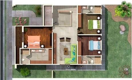 2. Mẫu nhà vườn 1 tầng 3 phòng ngủ hiện đại công năng sử dụng cao